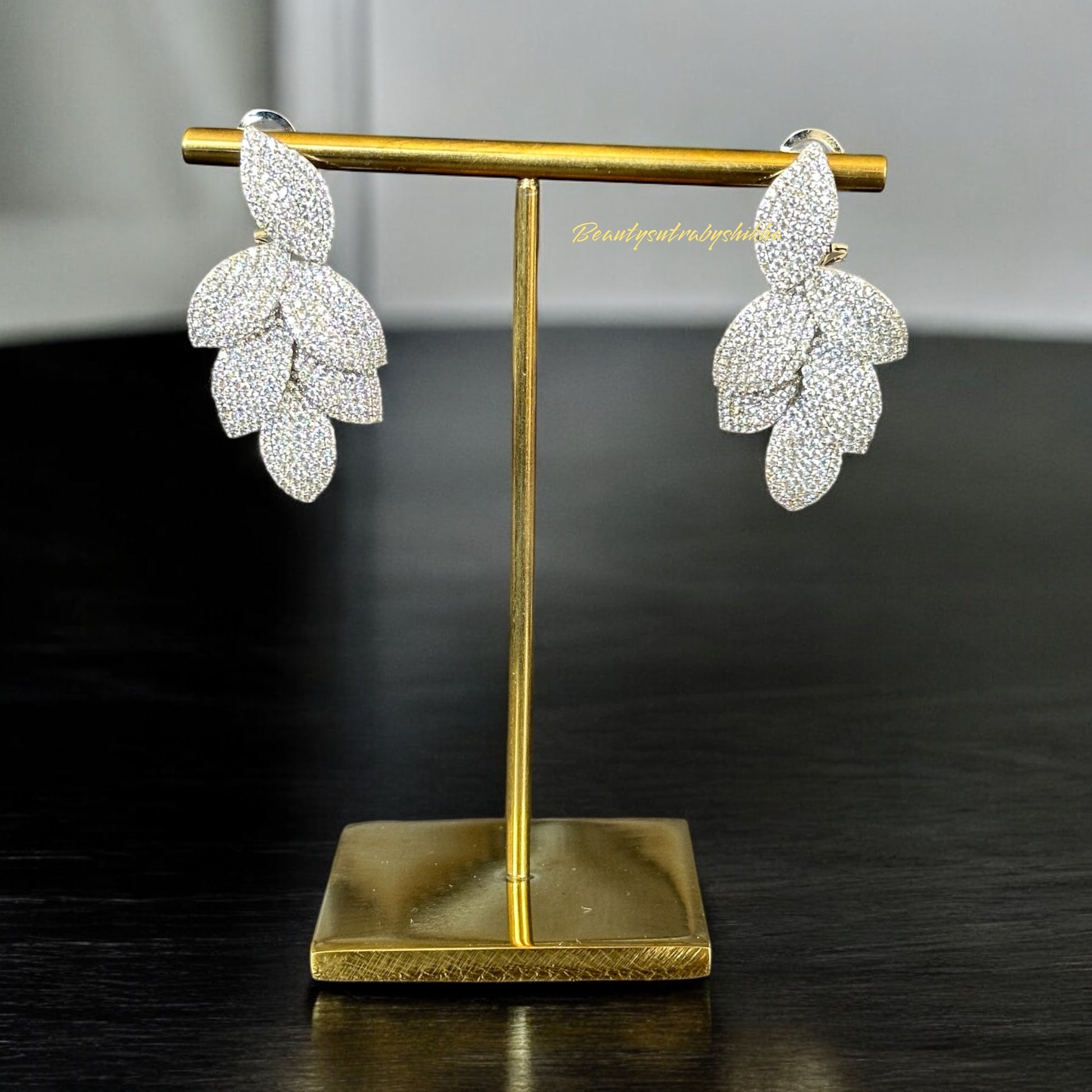Add a touch of glamour with our Exquisite CZ,Diamond Leaf Drop Earrings. These premium jewelry pieces by Beauty Sutra feature a stunning design that will make you stand out. Elevate your style with these earrings that exude elegance and sophistication. Perfect for any occasion.