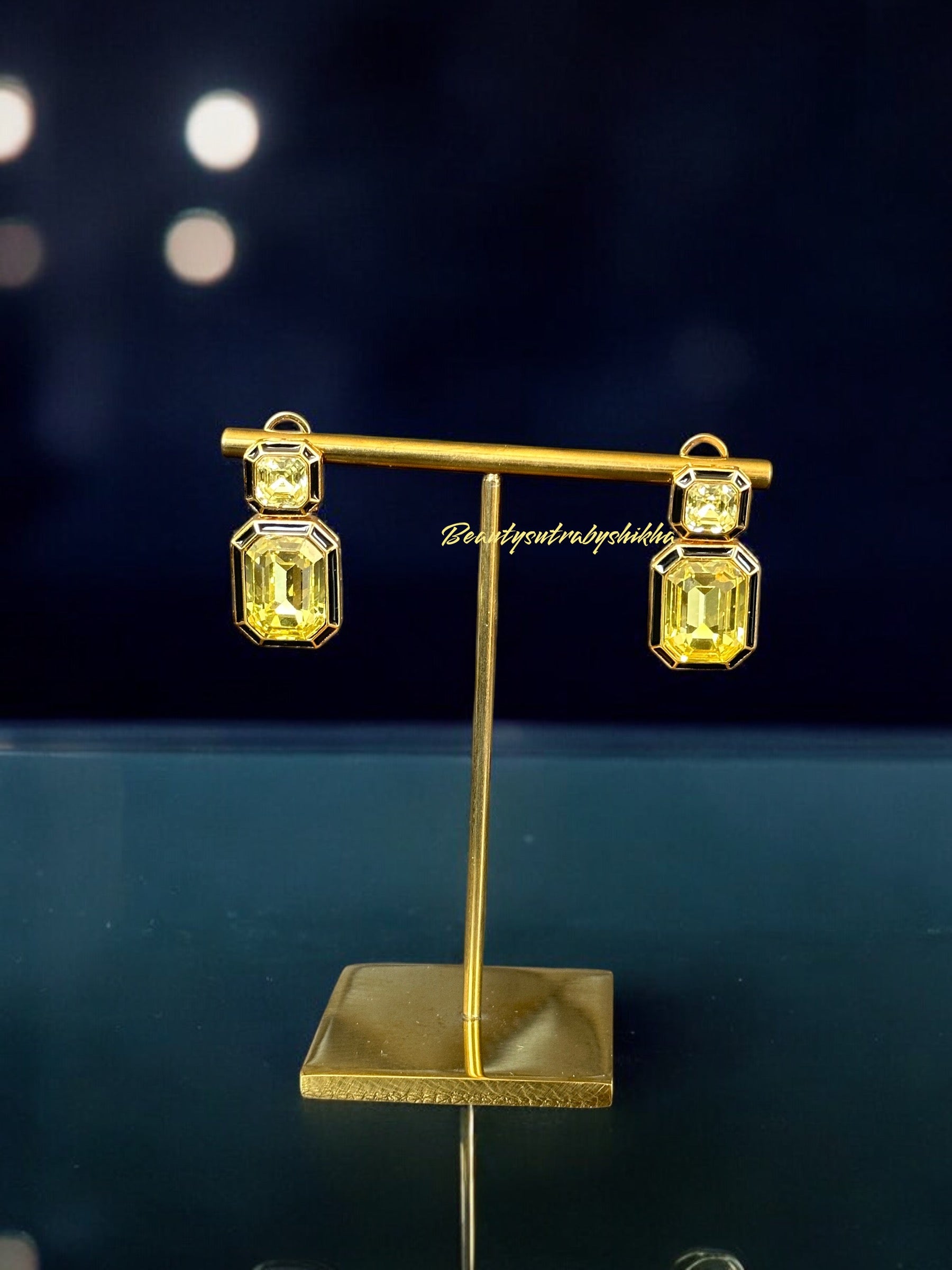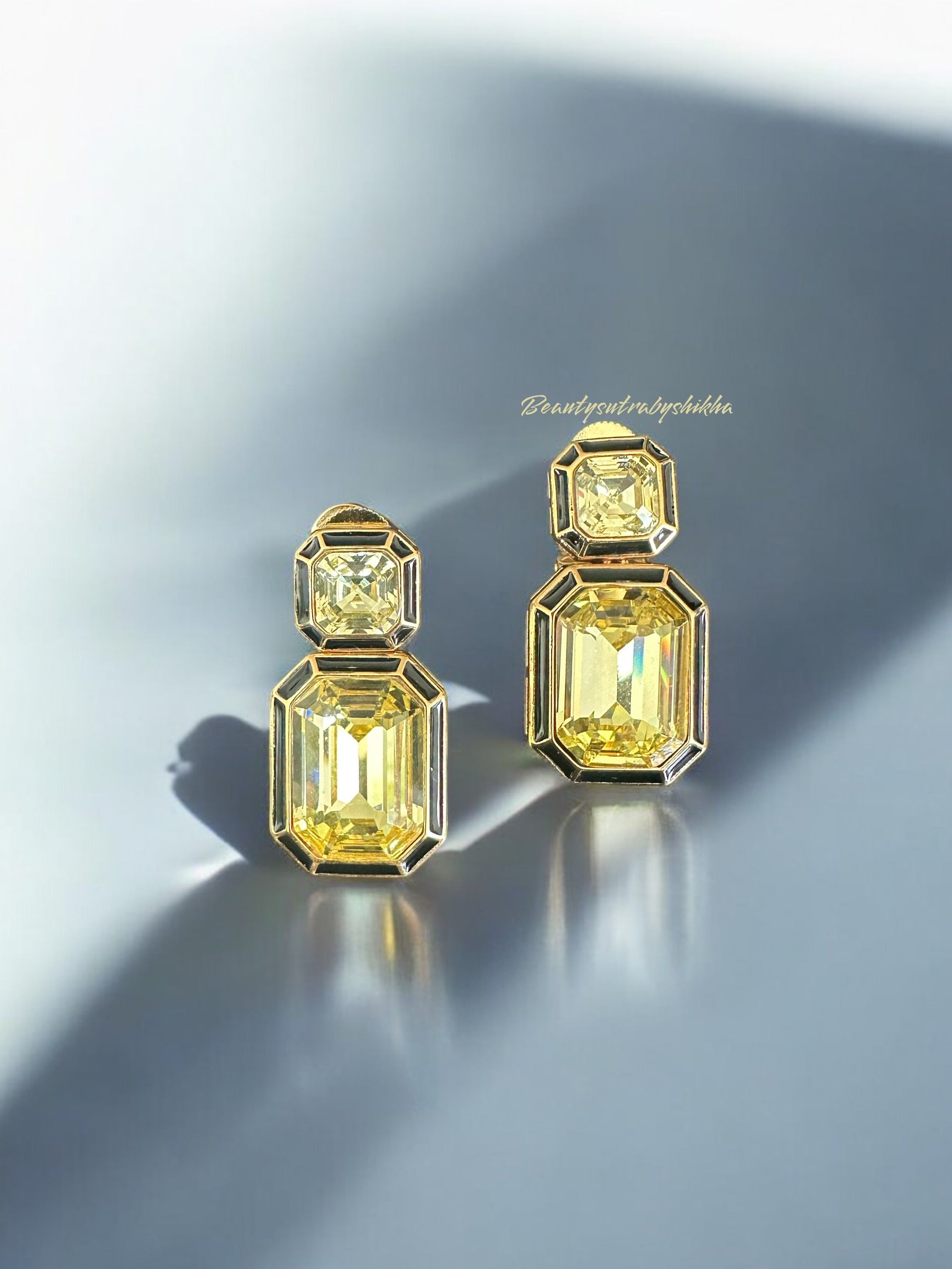 Indulge in luxury with our Stunning Yellow Gemstone Drop Earrings! The elegant gold setting adds a touch of sophistication to the vibrant yellow gemstones, making these earrings a statement piece for any occasion. Elevate your style and make a statement with Beauty Sutra's Luxury Collection.